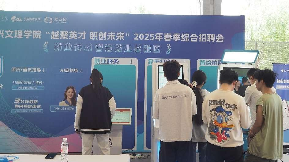 作为本次招聘会的最大亮点,AI智慧就业赋能区成为全场焦点。由中国教育在线·就业桥提供技术支持的一站式智能服务专区,首次将人工智能深度融入求职全流程,为毕业生提供高效、精准的就业支持。