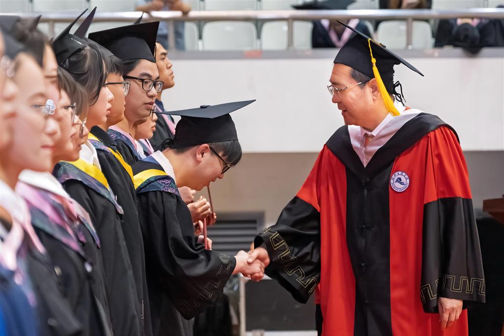 赵阳为毕业生代表授予学位、颁发学位证书。