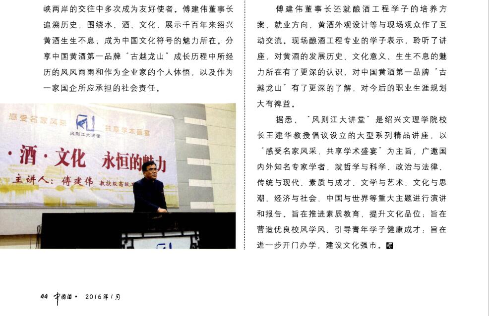 《中国酒》杂志刊发文章 报道傅建伟作客风则江大讲堂