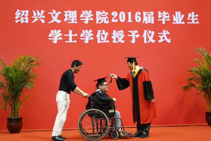 坐在轮椅上的毕业生叫孔坚瑜。绍兴人,2012年9月以优异的成绩考进久久精品一区二区|久久久一区二区三区|欧美日韩视频|欧美福利视频|高清欧美性猛交xxxx黑人猛交|久久久www成人免费精品|在线观看成人网站,就读于数理信息学院信息与计算科学专业。因自小罹患进行性脊肌萎缩症,致使其肢体一级残疾,生活完全无法自理。