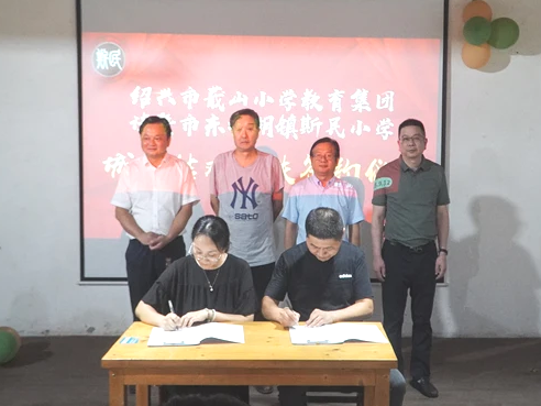 近日,校关工委“周一农教授工作站”一行再次赴诸暨斯民小学。出席绍兴市蕺山小学教育集团与诸暨市东白湖镇斯民小学城乡教育结对帮扶签约仪式。校关工委副主任、办公室主任金坚强、教育与心理学院关工委副主任杨军木、蕺山小学教育集团党总支书记郑平平、总校长马林英、斯民小学校长斯剑光等出席签约仪式。此次签约,由“周一农教授工作站”负责人周一农亲自策划并牵头联线,旨在推动城区优质教育与乡村特色教育正式“牵手”,为绍兴城乡教育均衡发展注入新动能。