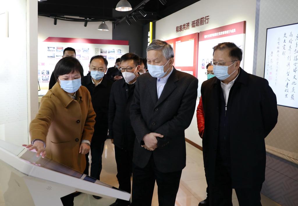毛宏芳一行先后走访了河西校区改扩建工程和校史馆等地,听取了学校关于建设发展、办学成果和规划目标等相关工作汇报。毛宏芳肯定了学校建设发展成果,他指出,学校要继续全面落实立德树人根本任务,在学科建设、人才培养、人才队伍建设、科学研究和社会服务等方面不断取得新突破。