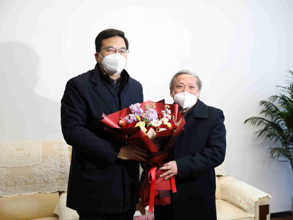 1月4日上午,绍兴市委书记盛阅春专程来校慰问土木工程学院教授、俄罗斯自然科学院外籍院士、省特级专家伍法权。市委秘书长孙君,市委组织部副部长、“两新”工委书记、人才办常务副主任王国飙,绍兴市科技局党组书记、局长徐丽东等陪同慰问。校党委书记汪俊昌,党委副书记沈赤,党委委员、组织部部长、人才办主任宣绍龙,党办、校办、人才办、土木工程学院相关负责人等参加慰问活动。