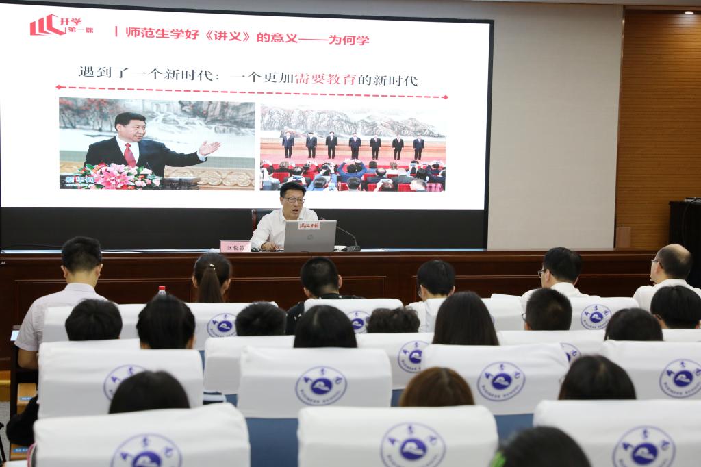 学校成立马克思主义学院以来,除了推进线上线下思政课教学改革,学校还在所有开课班级开设思政课“开学第一课”,聚焦“学‘四史’ 忆初心 担使命”“践行青春誓言,担当强国使命”“扎实推动高质量发展建设共同富裕示范区”等主题,加大党的最新理论成果和大政方针“三进”工作。