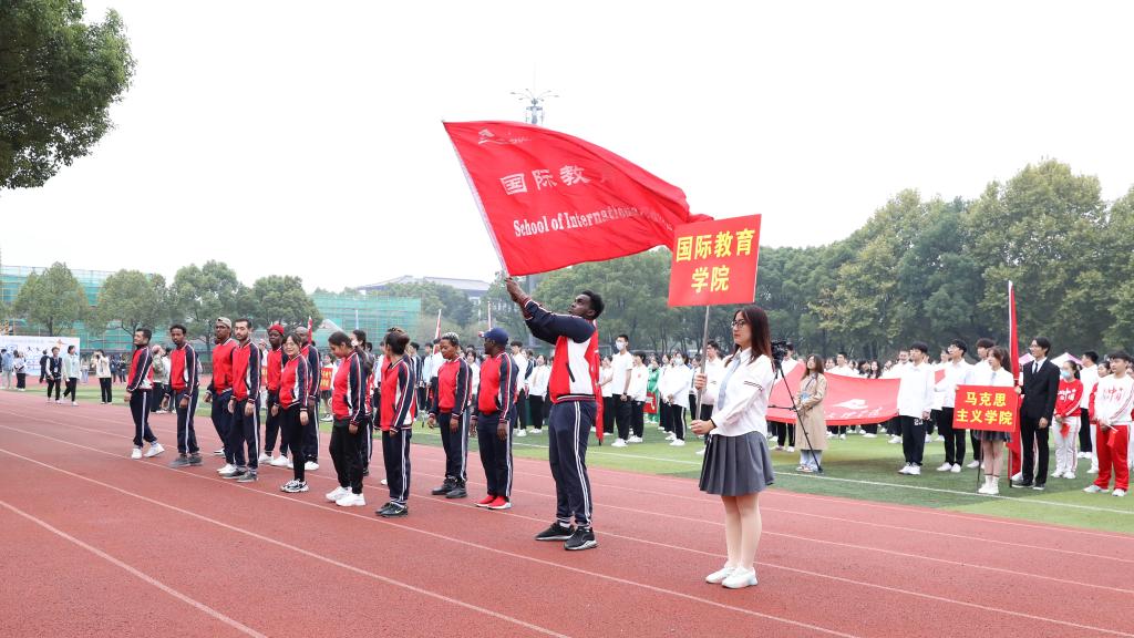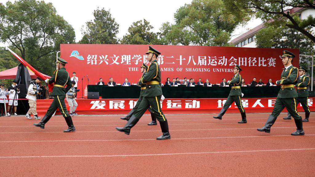 国旗、校旗、运动会会旗以及各二级学院运动员代表组成的方阵依次入场,各方阵同学身着统一服装、迈着坚定昂扬的步伐,彰显出青春与活力。升国旗仪式中,在场师生庄严肃立,面向国旗行注目礼。