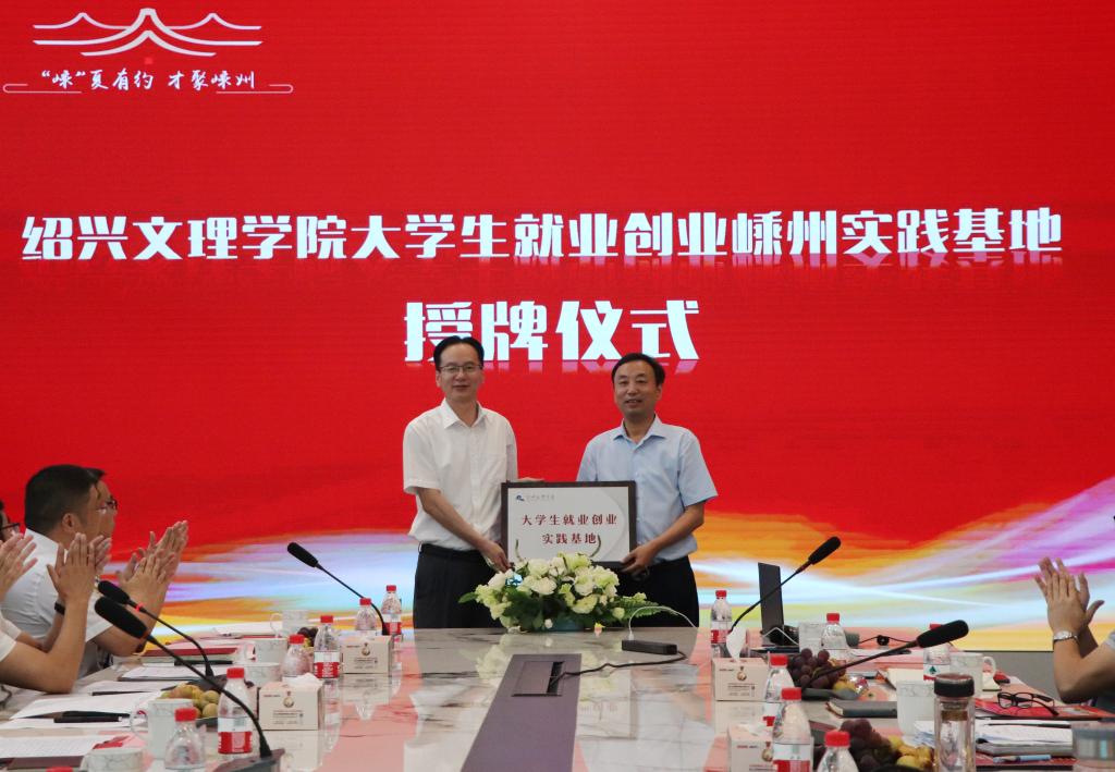 期间,双方就大学生就业创业实践签订校地、校企合作协议。张宏代表学校为浙江亿田智能厨电股份有限公司、绍兴弗迪电池有限公司、浙江万丰锦源控股集团有限公司、浙江盛泰服装集团股份有限公司、嵊州陌桑高科股份有限公司等5家企业授牌。
