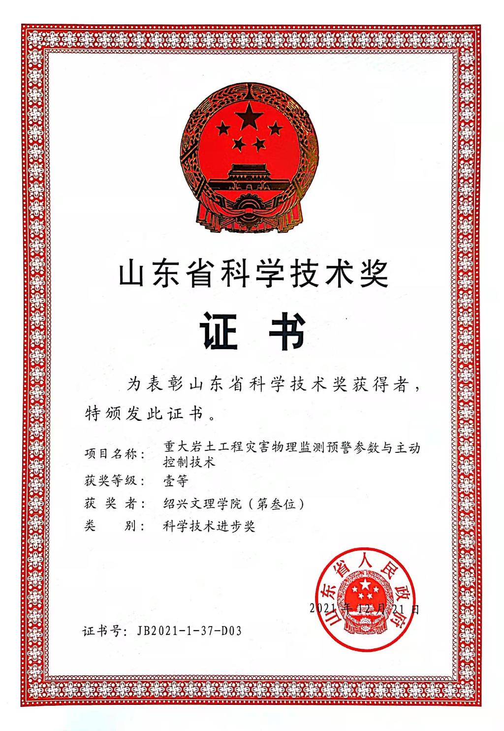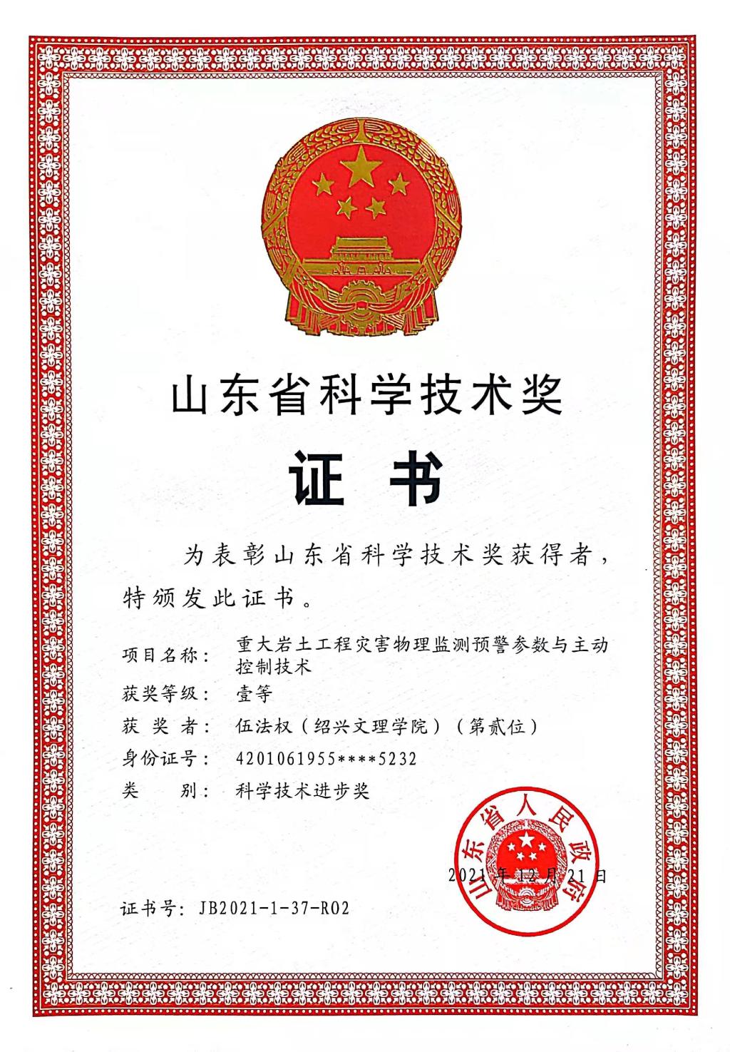 近日,山东省政府印发《山东省人民政府关于2021年度山东省科学技术奖励的决定》,我校作为第三完成单位,土木工程学院伍法权教授作为第二完成人的科研成果——“重大岩土工程灾害物理监测预警参数与主动控制技术”荣获科学技术进步奖一等奖。