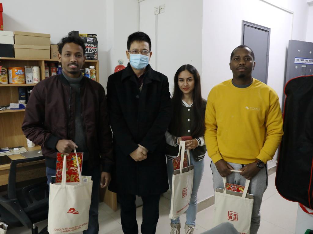 1月29日,农历腊月廿七,校长王建力走进公寓和书院,向在校过年的研究生、本科生和国际留学生送上慰问品和新春祝福,共迎壬寅年的到来。党办、校办、学工部、研究生工作部、国际教育学院等部门负责人陪同慰问。