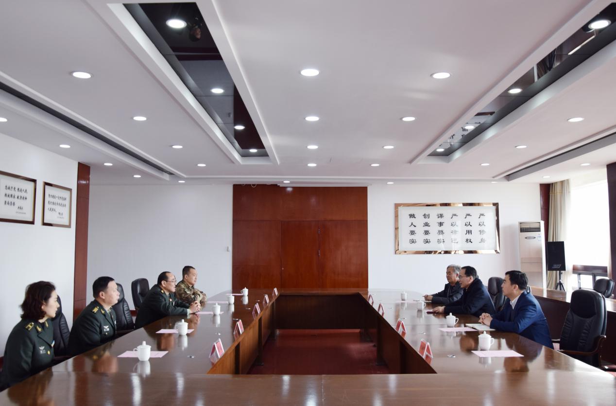 预备役第一基地政委张永才大校向张宏一行表示欢迎和感谢,希望今后部队与学校多沟通交流,并表示在得到上级指令后会全力支持学校军训工作。