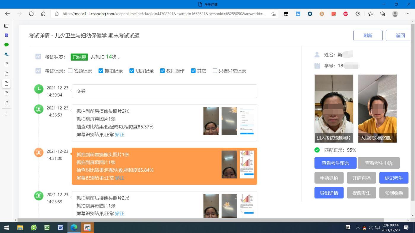护理学191班胡佳瑶因疫情原因没能回家,在寝室里完成了3场考试,从调整监考机位,从答题到交卷,整个过程都很顺利,她说,对接下来安心地完成其他3门课的考试更有信心了;医学影像学201班朱梦琦同学在家完成了《医学微生物学》课线上期末考试,内心充满了激动与感激:“特殊形势下,学院人性化的安排,允许我们提前离校参加线上学习和考核,体验很新奇,在家的我们更要努力学习,诚信应考,争取取得令自己满意的成绩。”