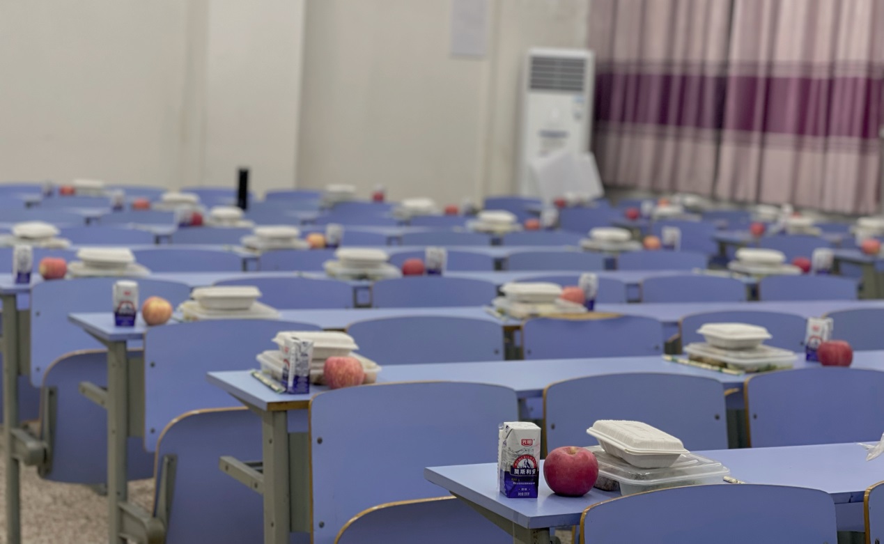 根据学校疫情防控要求,餐厅提前对考试当天的用餐进行了部署,以方便师生为前提,根据考生人数,做好菜品供应,在食堂窗口特别开设“研究生考生专窗”,为考生提供可口的饭菜,并免费为每位考生提供一份水果盒一瓶酸奶。为跨校考试同学进行配送餐服务,南山学生餐厅累计送出盒饭2500余份,送餐过程中做到严格掌控时间、保证餐品质量。
