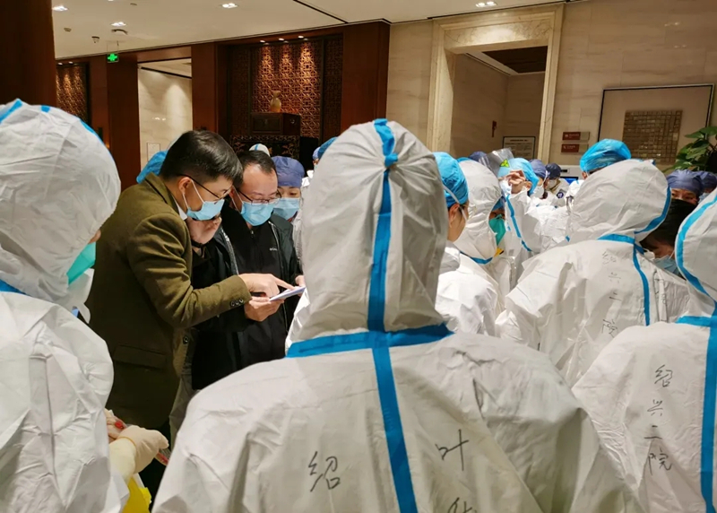 上虞疫情爆发以来,附属第一医院紧急抽调人员驰援上虞,奔赴临江院区、发热门诊及各核酸采样点等一线岗位。12月10日倡议发出以来,截至当晚7时,共有639名职工加入到后援团。由于时间紧,任务重,医务人员收到命令后,没来得及与家人朋友告别,没来及收拾行囊,很多人穿着工作服便来集结奔赴各个战场。