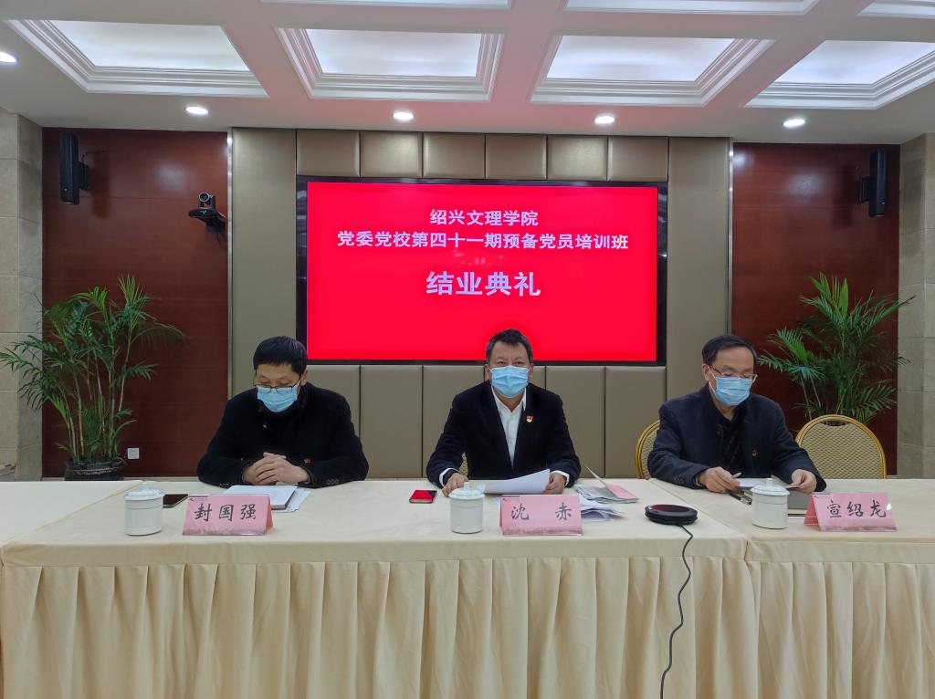 12月14日晚,校党委党校第四十一期预备党员培训班结业典礼在铁城科教馆一楼会议室举行,全体学员通过观看直播的形式参加结业典礼。校党委副书记、党校校长沈赤和部分党校校务委员会委员参加活动,活动由校党委委员、组织部部长、党校常务副校长宣绍龙主持。
