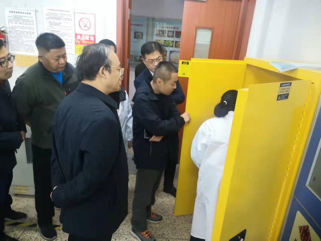 11月24日下午,副校长柳国庆、黄坚带领相关职能部门负责人、实验室安全督导组成两组实验室安全现场综合检查小组,对理工类、医学生物类、机械类、化学类的实验室进行重点现场综合检查。柳国庆、黄坚在检查中认真听取相关学院、实验室负责人对实验室安全管理的有关情况汇报。同时针对存在的安全隐患,要求相关职能部门尽快配合解决。