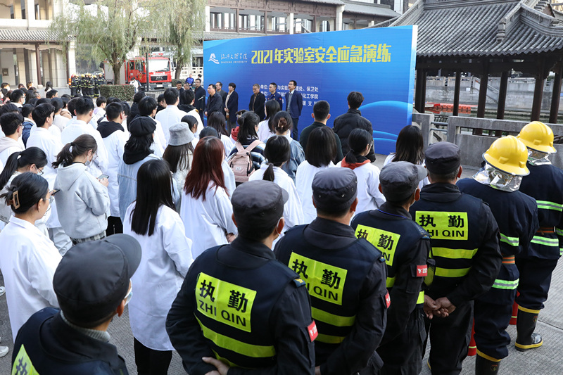 11月25日下午,学校在志廉楼开展实验室火情应急演练。副校长柳国庆、绍兴市消防救援支队相关领导、二级学院分管实验室负责人、相关职能部门负责人、实验室管理人员、师生代表共300余人参加演练。