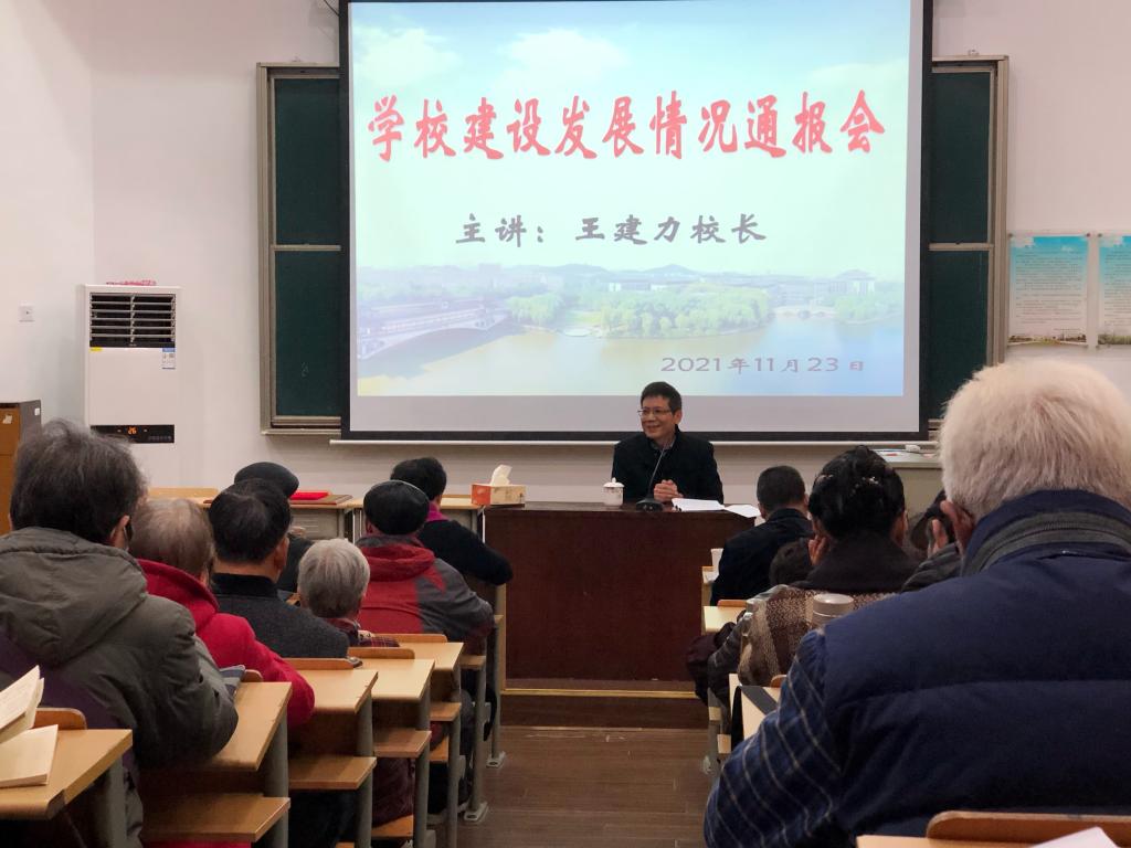 11月23日上午,在河东校区老图书馆一楼报告厅开展的离退休党员主题党日活动上,校长王建力介绍了学校建设发展情况,校党委副书记沈赤传达学习了党的十九届六中全会精神。