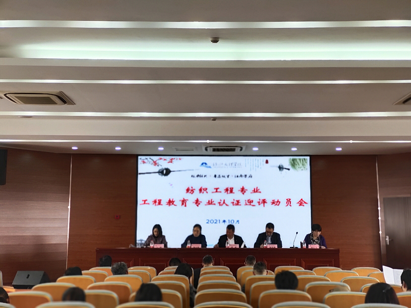 10月22日中午,纺织工程专业工程教育专业认证专家进校迎评动员会在岩土大楼7楼报告厅召开。学校党委副书记沈赤作动员讲话,校教务处、教学质量评估中心主要负责人,纺织服装学院全体教职工参加会议。