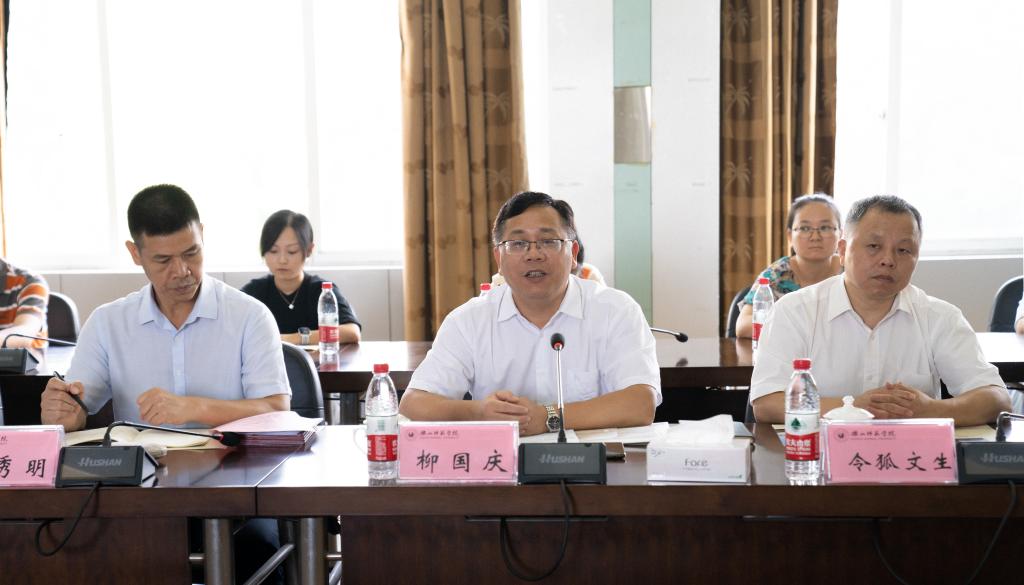 柳国庆介绍了我校办学历史和学科建设发展情况,分享了我校硕士学位点建设和研究生培养的经验,指出本次调研交流旨在进一步落实两校战略合作协议,不断推动两校在人才培养、学科建设、科研技术共享、地方文化研习等方面的合作,对深化东西部高校教育协作具有深远的意义。他表示,乐山师范学院与我校有着艰苦奋斗历史、地域文化背景等许多共通之处,两校战略合作是我校推进开放合作办学、加强内涵建设、提升办学质量的重要举措,希望以这次联合培养研究生为契机,进一步密切双方联系,充分发挥各自优势,切实把联合培养研究生各项工作做好、做实、做细、做出成效。