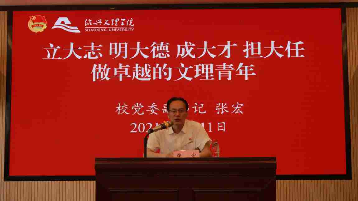 随后,张宏以“立大志、明大德、成大才、担大任——做卓越的文理青年”为主题,为学员们带来了一堂精彩的团课。他表示,非常荣幸能与秀松人才学院的学员们在俞秀松纪念馆学习习近平总书记重要讲话精神,探讨当代青年如何实现青春、理想、奋斗、担当的目标。绍兴历史上有很多值得学习的优秀青年榜样,“民族的脊梁”鲁迅先生,“人民的总理”周恩来,“共青团创始人”俞秀松烈士等都是值得我们学习的。我校也有很多值得学习的杰出校友,秀松人才学院的学员要向着卓越人才这一目标继续奋斗。他对秀松人才学院学员提出四点要求:一是“立大志”。目标决定方向,一个人的潜力是无限的,要有明确的目标并保持坚定的信念。青年只要有理想和信念,中华民族伟大复兴的中国梦定能实现。二是“明大德”。要培养“有德有才”的青年人才,积极弘扬社会正能量;要修好公德、私德,学会劳动、学会感恩,树立正确的人生观、世界观、价值观,在奋斗中绽放个人最绚烂的光彩。三是“成大才”。青年时期的知识水平将决定其一生的发展,青年要珍惜当下,奠定扎实的学识基础,厚积薄发。四是“担大任”。要在真刀真枪的实干中成就一番事业。