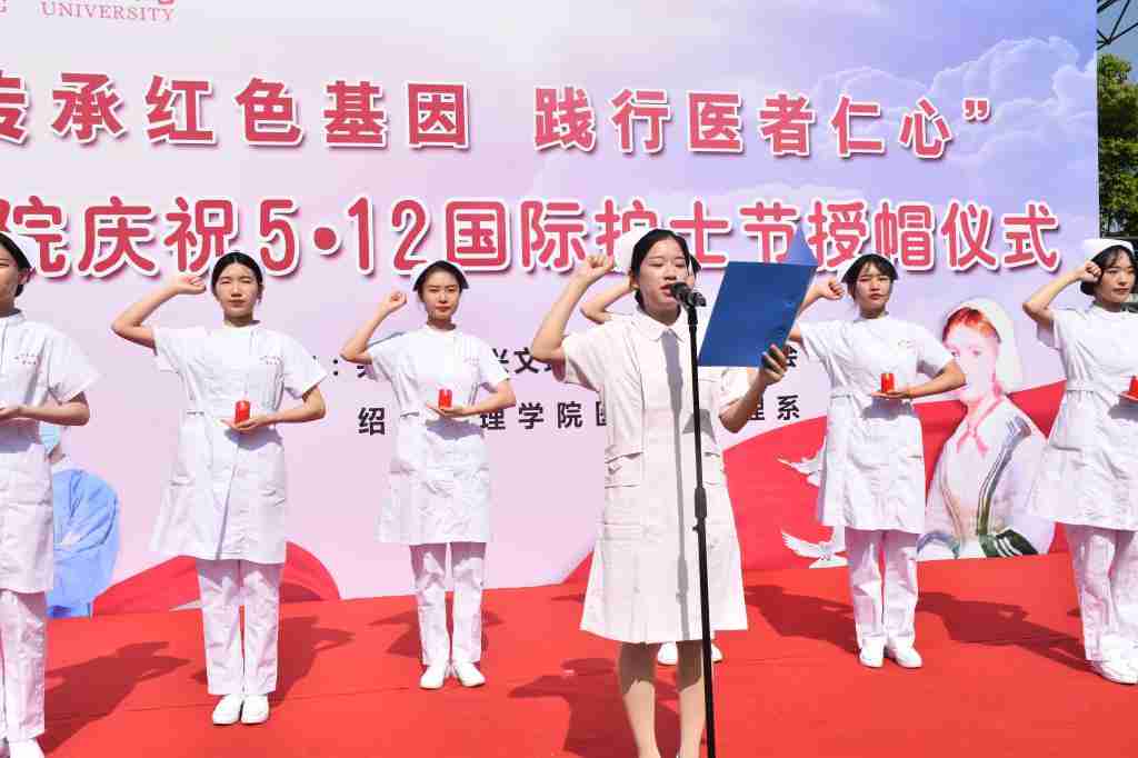 柳国庆向在座的护理专家、护理老师和护理同学们致以节日的问候和美好的祝福。他指出,百年来,绍医护理人才辈出,学科专业建设和教育教学改革成绩斐然,知名度和美誉度不断提高。他希望绍医护理学子牢记医者誓言,践行仁心仁术,信念在心,笃实力行,坚持将人生理想与职业信念、崇高医德和精湛医术相统一;坚持知行合一,苦练临床技能,迎难而上,勇于担当,真干实干,为学校百年护理教育品牌增添新的内涵;涵养高尚医德,温暖病患人心,尊重患者、理解患者、关爱患者。