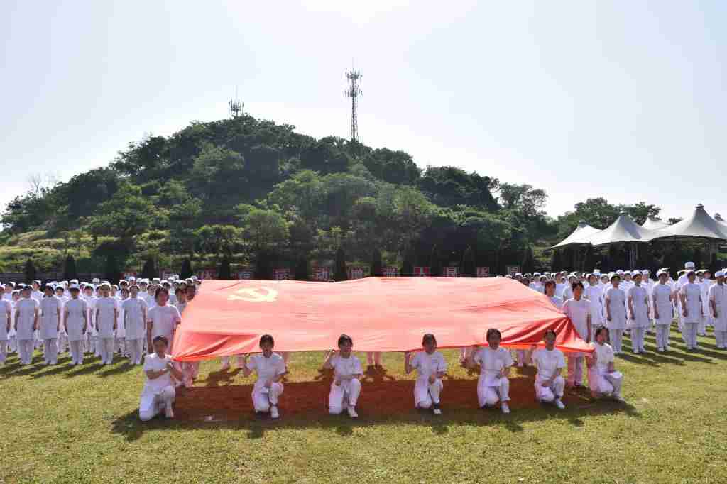 活动现场,护理学党支部2019级学生护送党旗入场,展现 “1921-2021”造型,表达对建党百年的祝福和期许。