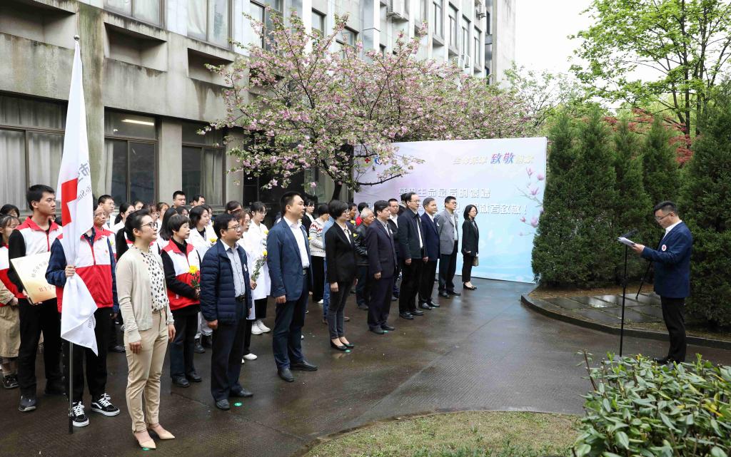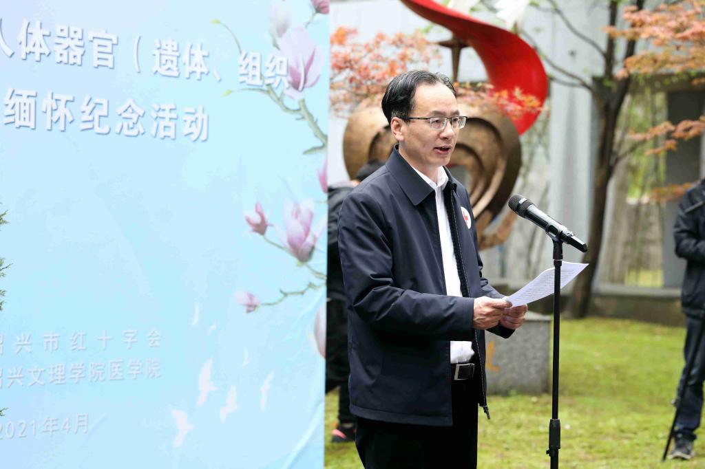 4月1日上午,绍兴市2021年人体器官(遗体、组织)捐献者缅怀纪念活动在我校举行,校副书记、红十字会会长张宏,市政府副秘书长周宝林,市红十字会党组书记、常务副会长华珺,校医学院、越城区红十字会等相关负责人参加活动。