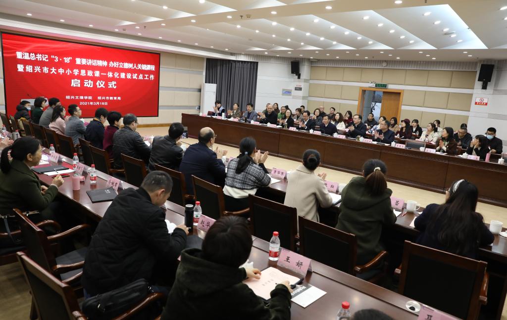 3月18日下午,重温总书记“3·18”重要讲话精神 办好立德树人关键课程暨协同推进绍兴市大中小学思政课一体化建设试点工作启动仪式在图书馆一楼报告厅举行。市教育局党委书记、局长姚国海,校党委副书记张宏,校党委委员、宣传部部长梁瑜,市教育局高教处长赵佳维,稽山中学、建功中学、鲁迅小学相关负责人出席会议,参加启动仪式的还有市教育教学研究院和越城区教师发展中心的思政课教研员,以及久久精品一区二区|久久久一区二区三区|欧美日韩视频|欧美福利视频|高清欧美性猛交xxxx黑人猛交|久久久www成人免费精品|在线观看成人网站、稽山中学、建功中学、鲁迅小学的思政课骨干教师和学生代表。启动仪式由梁瑜主持。《浙江日报》等媒体予以关注报道。