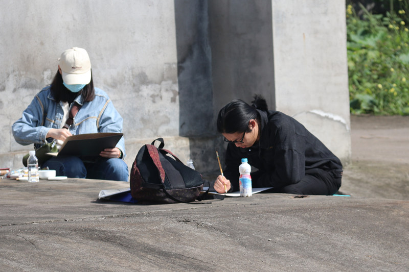 采风当天,美术系、设计系本研学生在讲解员的引导下参加了宋六陵校区校门、大礼堂、行政楼、教学楼、校史馆等建筑,感受老旧房屋的一砖一瓦以及其中蕴含的老一辈校友们求学治学的激情。参观结束后,大家开始在老师的指导下对六陵校园旧址的自然景观与人文风情进行绘画写生和摄影,作品汇集了当代学子对过往教学条件艰难困苦的思考,展现了对前辈艰苦卓绝、励志研思的敬重和仰慕。