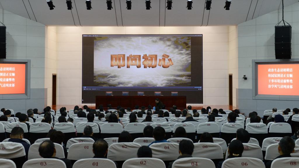 11月26日下午,学校举行第十二届“廉洁文化月”开幕式。校党政领导班子成员、全校科级及以上干部、校纪委委员、各分党委(党总支、直属党支部)委员、二级纪委委员(纪检组成员)、特别监察员、特邀监察员和民主党派负责人参加开幕式。校党委书记汪俊昌讲话,校长王建力主持开幕式。