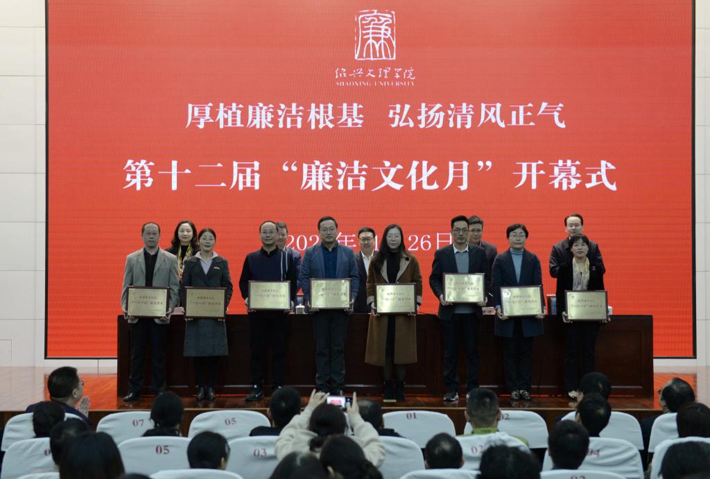 校纪委书记柯羽宣读了学校廉洁文化“一院一品”表彰文件。机械与电气工程学院、马克思主义学院、人文学院、数理信息学院、生命科学学院、商学院、附属医院、元培学院的8个项目被确认为第二批“一院一品”廉洁文化品牌项目。校领导为廉洁文化“一院一品”单位授牌。