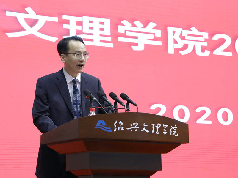 今天,我们在千年古城绍兴如期相会,通过线上线下结合的方式,共同见证来自世界各地的3119名本科生、506名研究生、86名留学生加入文理大家庭。你们的到来,为秀美的风则江平添了青春灵动,为文理注入了蓬勃生机。你们当中,有疫情爆发时全家受困武汉,仍与父亲一起积极参与志愿服务的孙若琳同学;有立志投身教育事业、与父亲同为文理校友的刘贝尔同学;有大学期间参军入伍、曾获武警部队“优秀士兵”的艺术专业研究生黄佳宝同学;有来自马达加斯加、曾获省中华经典诵读竞赛一等奖、今年我校研究生毕业后又再次攻读书法专业硕士学位的王诗云同学;还有更多的,经受住了疫情和升学双重考验的全体2020级新生,你们都是好样的!祝贺你们如愿步入大学殿堂,欢迎你们来到文理成就未来!