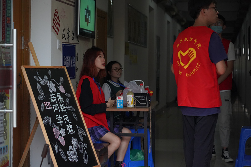 为了迎接新生们的到来,工作人员们也早早就位,准备好迎接学校最年轻的面庞。火车站、汽车站、迎新区域、教室、食堂、宿舍……志愿者的足迹遍布新生可能需要的所有地方。