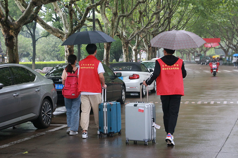 在高铁绍兴北站、绍兴火车站、汽车西站、汽车客运中心,学校大巴已做好准备,直接接送新生至两校区迎新报到点。在报到区域,学校还安排了摆渡车,专车托运新生行李至学生宿舍。