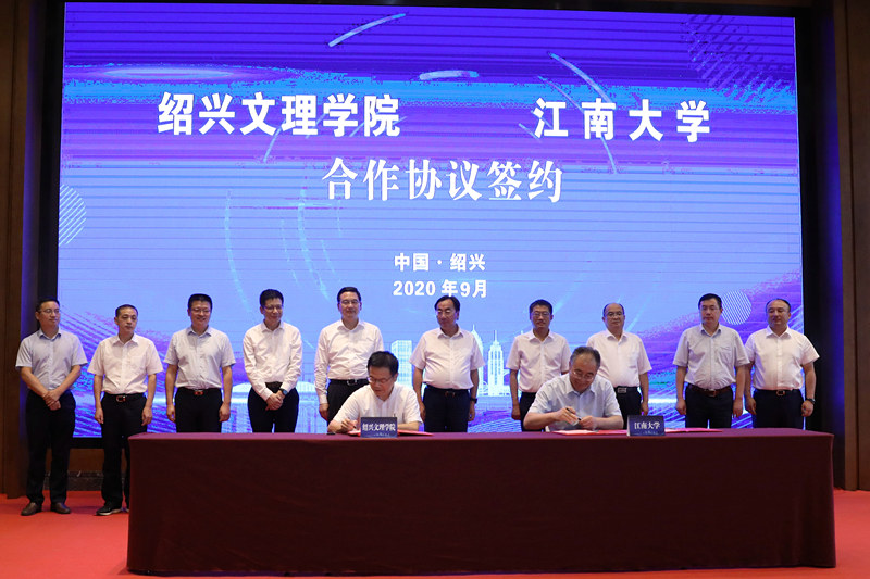 9月15日下午,绍兴市人民政府与江南大学新一轮全面战略合作协议仪式在我市举行,我校与江南大学签订合作协议。中国工程院院士、江南大学校长陈卫,市委书记马卫光致辞。市委副书记、市长盛阅春,副市长邵全卯,校长王建力,副校长寿永明等参加会议。