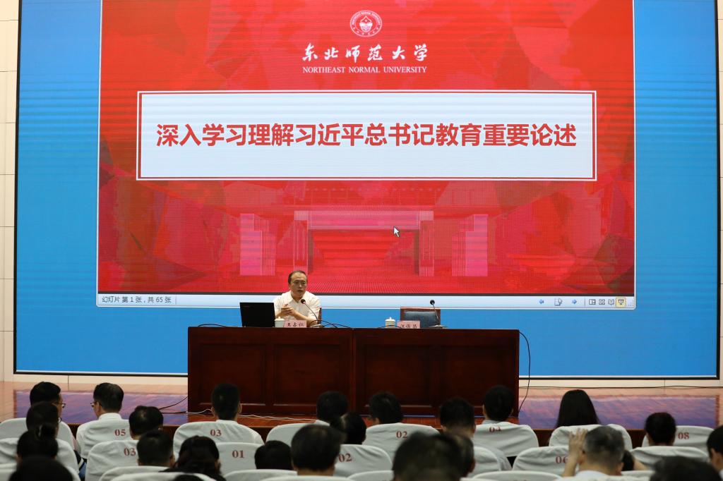 为深入贯彻落实上级精神,进一步学深悟透习近平总书记关于教育的重要论述,9月7日下午,学校党委理论学习中心组(扩大)会议在铁城一楼报告厅召开,专题学习《习近平总书记教育重要论述讲义》。《习近平总书记教育重要论述讲义》编写组核心成员,东北师范大学党委常委、副校长王占仁教授应邀作题为“深入学习理解习近平总书记教育重要论述”专题辅导报告。学校党政领导班子、全体中层干部160余人参加会议。会议由校党委书记汪俊昌主持。
