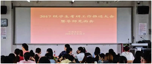 6月28日上午,外国语学院举行了2017级学生考研工作推进大会暨导师见面会。学院为加强考研服务与管理工作,成立了考研工作领导小组,由学院院长、书记担任组长,副书记担任副组长,精心挑选了专业能力强、热爱学生、工作认真细心的教师担任考研指导教师,全程指导、助力学生考研。新设南山9号楼408作为考研复习教室,以更有针对性地指导17级同学们考研,提高考研的积极性及成功率。