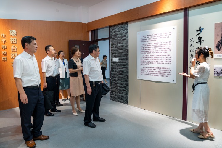 仪式结束后,领导嘉宾前往红色学府参加梁柏台纪念雕像揭幕仪式,共同参观梁柏台生平事迹展。汪俊昌和陈理平共同为梁柏台雕像揭牌。