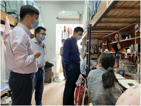 按照返校后教学工作方案规定,第一周继续实施课程网络教学。5月11日早上,校长王建力在教务处、学工部负责人陪同下,到寝室检查学生网络学习情况。
