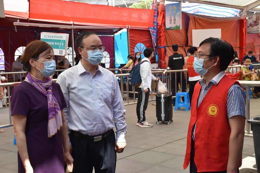 校领导走访学生返校接站点