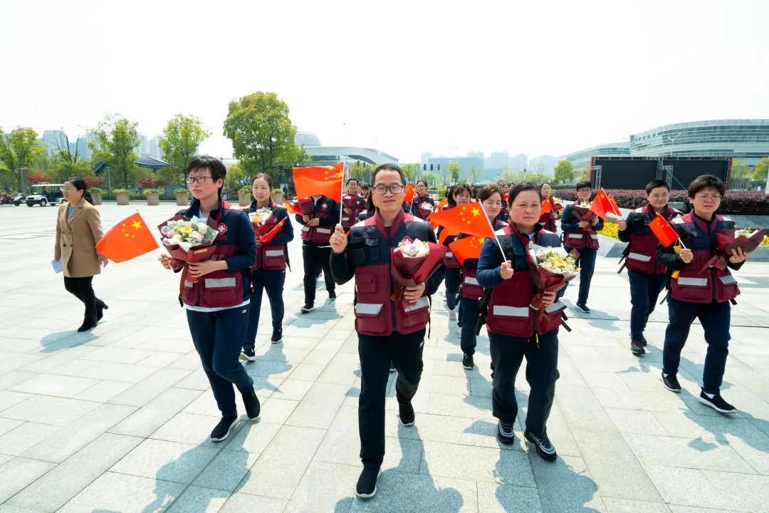 在市行政中心广场欢迎仪式现场,市领导为每位队员送上鲜花,颁发嘉奖证书和“战疫英雄”援鄂纪念章,向他们表示最崇高的敬意和最诚挚的问候。