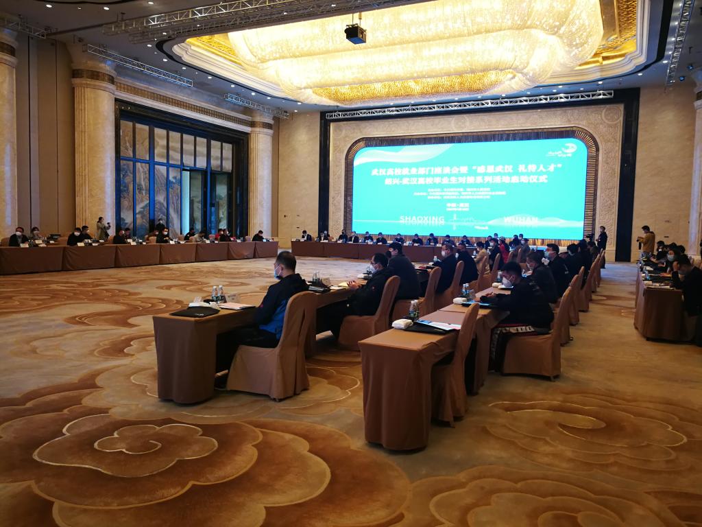4月10日上午,武汉万达瑞华酒店,新冠肺炎疫情以来,一场特别的座谈会正在进行,这是一场由绍兴市委市政府主办,感恩武汉、保障就业,面向广大武汉高校毕业生的人才活动。绍兴以武汉为起点,面向全国开出2020春季“人才专列”。在武汉按下重启键的第一时间,怀着感恩致敬和渴求人才之心,学校由张宏副校长带队,“搭乘”今年全国第一列开进武汉的“人才专列”来到江城,并作为绍兴用人需求单位唯一代表进行现场推介。人民网同步直播,新华社、中国青年报、环球时报、荆楚网、浙江新闻客户端等媒体进行了跟踪报道。