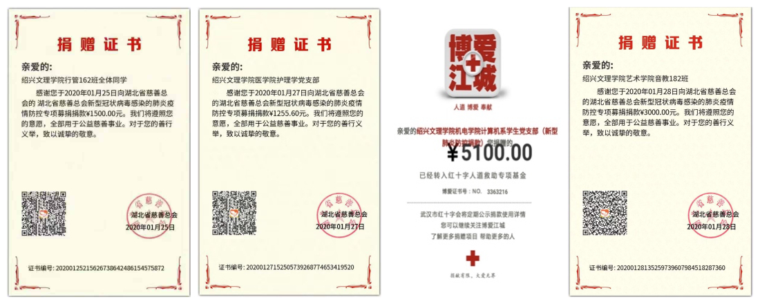通过线上支部号召,机械与电气工程学院、艺术学院等多个学院的学生党支部也在27日发起爱心捐款倡议,师生党员们纷纷慷慨解囊,表达作为一名共产党员对新型冠状病毒肺炎疫情抗击与防控工作的坚定支持,以及与武汉人民站在一起同呼吸共命运的坚定信心与决心,筹集的爱心捐款将以不同形式向湖北省慈善总会和武汉市红十字会捐赠,用于新型冠状病毒肺炎疫情防控。来自机械与电气工程学院的一位学生党员捐赠了1000元,他表示自己从这次疫情公布之后就始终在关注着武汉的进展情况,在得知了武汉当地医院的医疗物资,医务人员后勤保障力量紧张的情况后,就想着能不能为遏制疫情出一份力。他告诉记者:“我拿过这么多奖学金,拿出一部分回报社会也是理所当然的。”