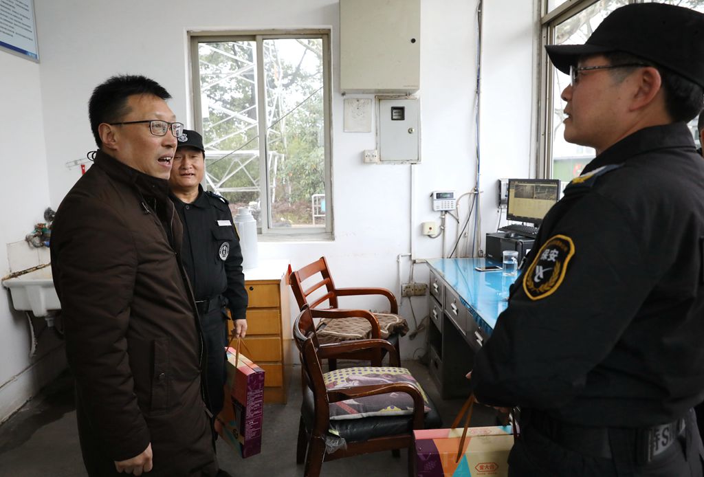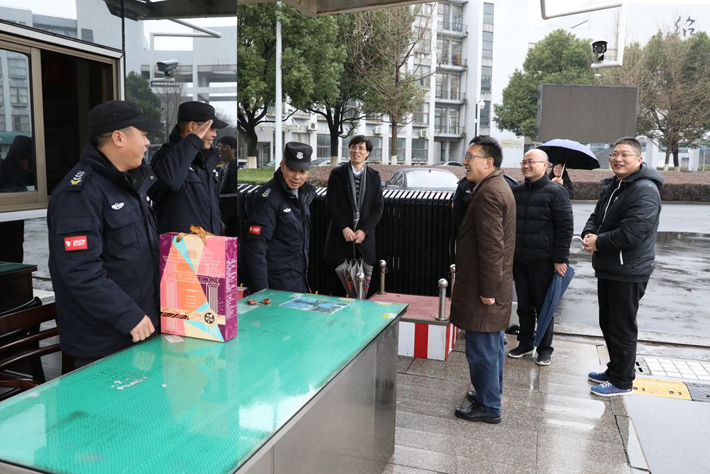 汪俊昌一行还先后来到学校总值班室、河西配电房、河西及南山校区大门传达室、南山校区阳明书院、兰亭书法艺术学院、上虞分院、元培学院,亲切慰问了寒假期间依然坚守岗位的教职员工,致以诚挚的问候并代表学校党委和行政送上了新春祝福和慰问品。他详细询问了寒假期间学校各项工作的保障情况和安全落实措施 ,希望大家继续坚守岗位,认真负责地完成岗位任务,保证寒假、春节期间学校的安全稳定和正常运转,同时要保重身体,共同抗击疫情。在岗教职工纷纷表示十分感谢学校领导的关心和慰问,一定踏实坚守岗位,确保学校寒假期间的平安稳定和正常有序。