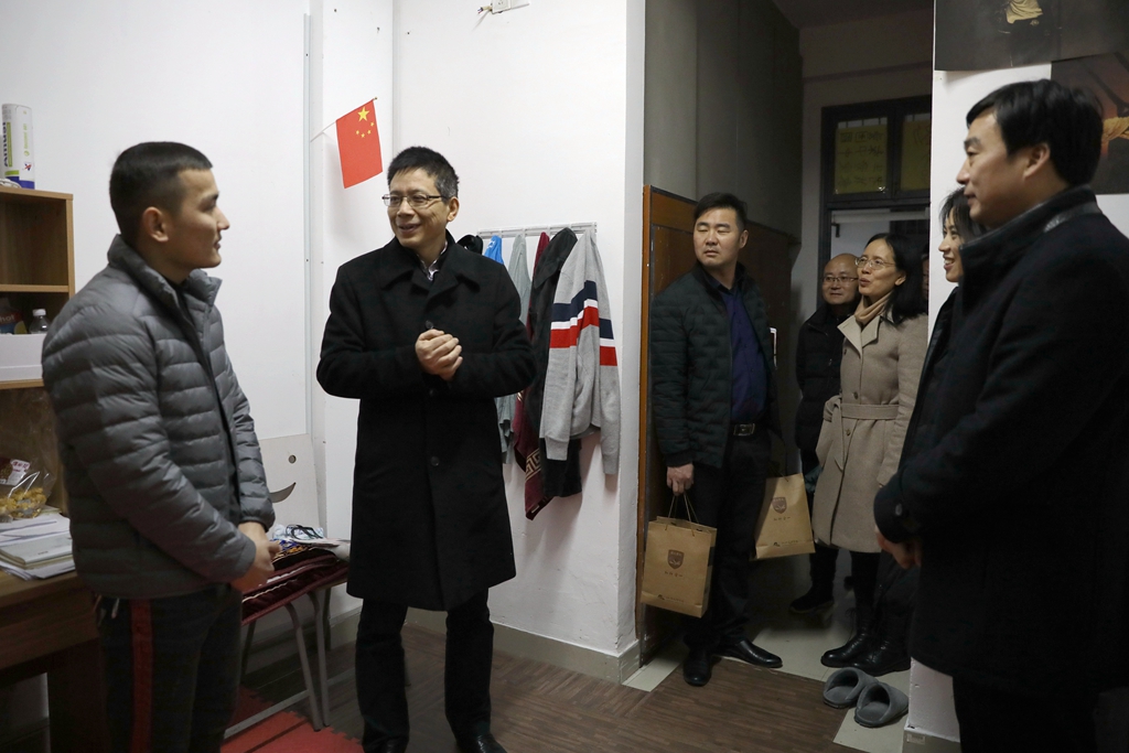 1月22日,农历腊月廿八,校长王建力走进公寓和书院,向在校过年的国内外学生送上新春祝福,共迎庚子年的到来。党办校办、学工部、研究生工作部、国际教育学院等部门负责人陪同慰问。