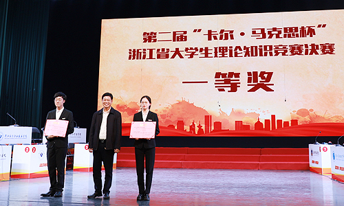 11月23日,第二届“卡尔马克思杯”浙江省大学生理论知识竞赛决赛在浙江工商大学举行。经过激烈角逐,我校元培学院参赛团队名列全省第一名,荣获一等奖。省委宣传部、省教育厅领导和相关处室负责人、入围高校分管领导及入围决赛高校师生代表参加活动。