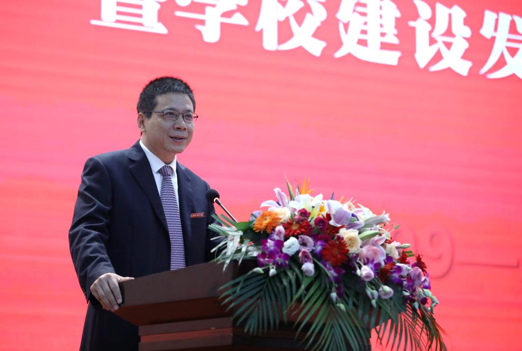 汪俊昌在讲话中代表学校对各位领导、校友的到来表示欢迎和感谢,重温了学校筚路蓝缕、传薪兴学的历史和责任。