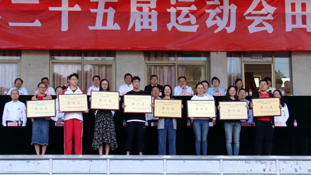 本届运动会共有1233名学生参加了34项比赛,共决出奖牌102枚,其中金牌34枚;共有300余名教职员工参加了5个团体项目,产生了30个团体奖。闭幕式上,运动会组委会委员、精神文明评议组副组长吕志伟宣布本届田径运动会精神文明奖得主,分别是生命科学学院、数理信息学院、外国语学院、教师教育学院、土木工程学院、化学化工学院。校运动会总裁判长郭权宣布了本届运动会教工趣味大赛团体成绩前六名,分别是土木工程学院、纺织服装学院、元培学院、化学化工学院、附属医院、数理信息学院,以及田径比赛团体成绩前八名,分别是元培学院、数理信息学院、生命科学学院、商学院、上虞分院、纺织服装学院、机械与电气工程学院、土木工程学院。校领导分别为获奖代表队颁奖。