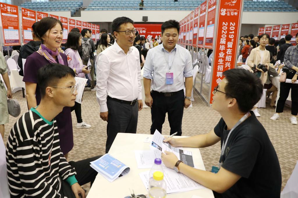 学校高度重视毕业生就业工作,招聘会期间,校党委书记汪俊昌、校党委副书记郝敬习一行来到会场与用人单位交流,详细了解用人单位发展状况和人才招聘情况,并鼓励毕业生主动应聘。相关职能部门领导、各二级学院副书记、辅导员、毕业班班主任也参加了本次招聘会,在现场对学生进行就业指导。