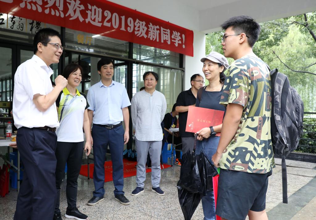 9月1日,古越大地秋雨潇潇,但学校洋溢着热烈的氛围,全体师生已准备就绪,以认真细致、快捷周到的服务和饱满的精神状态,迎接远道而来的2019级新生。校党委书记汪俊昌、校长王建力、党委副书记郝敬习、纪委书记柯羽在党校办、学工部、后勤管理处等部门负责人的陪同下,来到南山校区、河西校区和兰亭书法艺术学院迎新现场,慰问迎新师生,看望2019级新生。