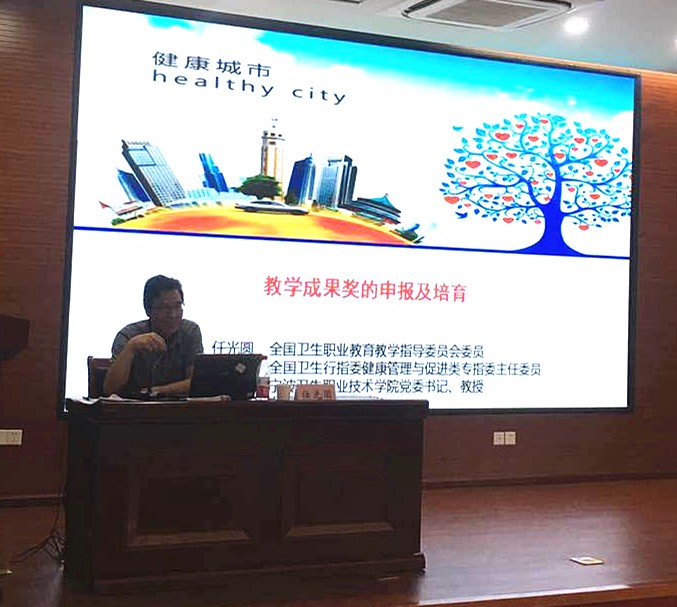 任光圆从“教学成果奖的定义与内涵”“教学成果奖的培育”“教学成果奖的申报”等方面,作题为《教学成果奖的申报及培育》的专题讲座。他指出,获奖的教学成果具有有独创性、新颖性、实用性的教学方案,能够将理论与实践结合,在经过2年以上的检验后得到推广应用,其改革效益在学生、学校、社会效益等方面实施效果显著,并为政府提供决策参考等特征。